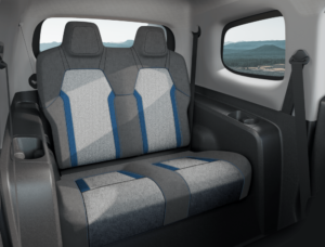 • Thiết kế tối giản, phù hợp cho dịch vụ vận tải. Ghế nỉ màu xám với điểm nhấn vàng hoặc xanh.